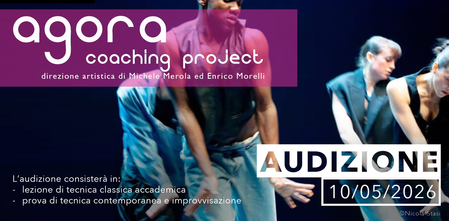 AGORA COACHING PROJECT è un progetto biannale di perfezionamento nella danza rivolto a danzatori di età compresa fra i 17 e i 23 anni. Agora si prefigge di formare artisti pronti ad affrontare in maniera flessibile la varietà del mercato internazionale della danza, artisti capaci di rispondere alle richieste di diversa natura, tecnico/stilistica, che provengono da questo stesso mercato. L’obiettivo è di fornire solide basi d’apprendimento delle diverse tecniche in uso nella scena di danza contemporanea internazionale e dei diversi repertori attraverso l’alternarsi di docenti e artisti qualificati portando in scena i lavori realizzati dai coreografi ospiti. Il corso vuole offrire un ampio ventaglio di stimoli, di carattere tecnico, culturale e di scambio tra allievi e coreografi, ciascuno dei quali proviene da e opera in realtà diverse tra le più interessanti del panorama internazionale. Agora fa incontrare i danzatori con affermati coreografi e direttori di prestigiose compagnie dando così la possibilità agli studenti di ottenere contratti lavorativi; Agora rappresenta così un ponte attivo ed efficace tra la formazione e il mondo del lavoro avendo costruito negli anni una rete di collaborazioni con numerose compagnie europee. Molti sono gli studenti di Agora che attualmente lavorano in questi prestigiosi ensemble.